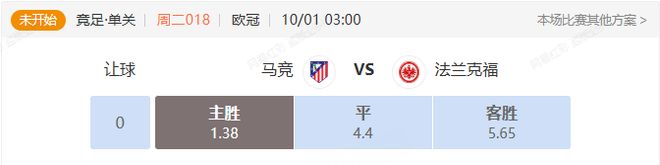 網(wǎng)易紅彩今日挑選專家趙志民帶來一場(chǎng)歐冠賽事解析,更多精彩方案可下載“網(wǎng)易紅彩”App進(jìn)行查閱!1.專家:趙志民競(jìng)足 周二018 歐冠馬競(jìng)VS法蘭克福開賽時(shí)間:2025-10-01 03:00:00