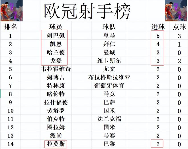 射手榜方面,姆巴佩5球領(lǐng)跑,凱恩4球排在第2。哈蘭德今天梅開(kāi)二度,戈登點(diǎn)射雙響,兩人3球升至第3。拉莫斯打入絕殺球,追上勞塔羅,拉什福德,韋拉霍維奇等人2球剛好擠入前十。