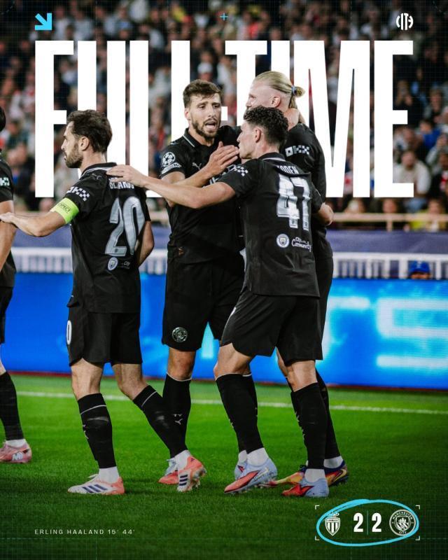 體壇周報全媒體原創(chuàng)摩納哥2比2曼城18'特澤,90'埃里克·戴爾(點球)/15'哈蘭德,44'哈蘭德歐冠聯(lián)賽階段第二輪,曼城做客挑戰(zhàn)摩納哥。哈蘭德首開紀錄,特澤遠射世界波扳平比分,哈蘭德頭球再度幫助曼城領先。常規(guī)時間最后時刻,尼科·岡薩雷斯抬腳過高送點,埃里克·戴爾罰入點球,摩納哥完成絕平。最終兩隊2比2握手言和。