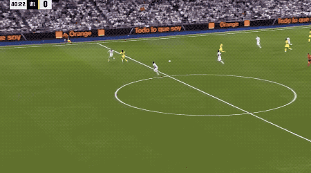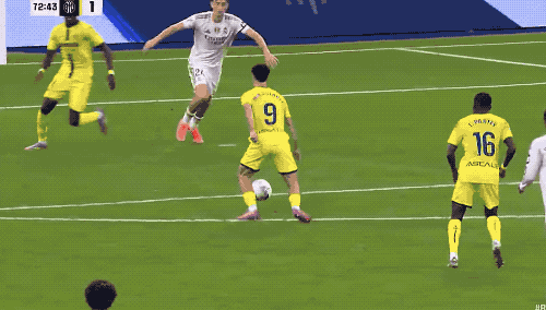 第40分鐘,皇馬險些丟球,比利亞雷亞爾的長傳打穿皇馬防線,奧盧瓦塞伊單刀面對庫爾圖瓦明顯腳軟,錯失良機。
