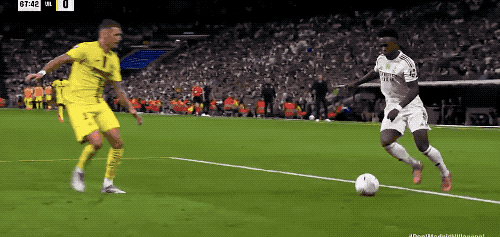 半場結(jié)束,兩支球隊0-0互交白卷。下半場開始后,維尼修斯突然發(fā)力,黃色潛水艇右路的防守根本頂不住。第47分鐘,維尼修斯輕松晃過穆利奧,之后的射門被康薩尼亞擋了一下,變向入網(wǎng)。