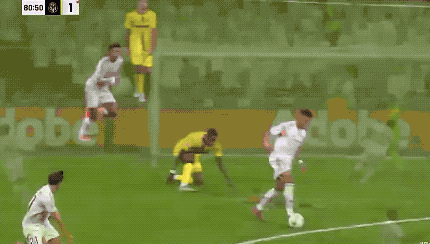 第73分鐘,米卡烏塔澤利用皇馬禁區(qū)前的漏洞,低射打進死角,為黃色潛水艇扳回一城。