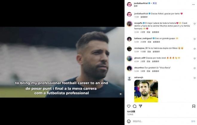 周二,效力于邁阿密?chē)?guó)際的傳奇巴薩邊后衛(wèi)阿爾巴通過(guò)社交媒體宣布將在賽季結(jié)束之后退役。在視頻中,阿爾巴宣布了自己的決定,并且表示,“感謝足球”。