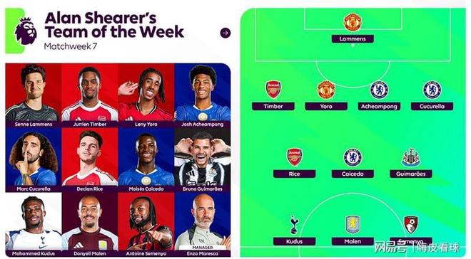 英超官網(wǎng)發(fā)表了自己的看法,也羅列了自己心目中的11人。不同的是,希勒比較青睞擊敗了利物浦的切爾西,以及重登榜首的阿森納,兩隊(duì)貢獻(xiàn)了5名中后場(chǎng)球員。不過,曼聯(lián)還是有兩名球員,拉門斯依然是其中之一,約羅替換了謝什科。
