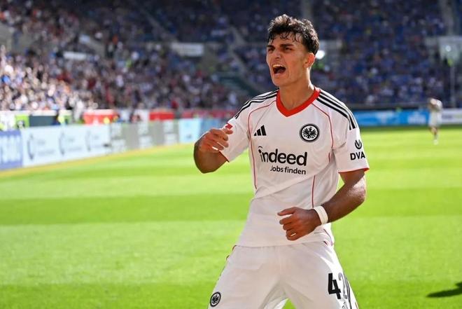 2005年11月出生的詹-烏尊只有19歲,出自紐倫堡青訓(xùn)。2023/24賽季,升入紐倫堡一線隊(duì)的烏尊出戰(zhàn)32場各項(xiàng)比賽砍下了19球3助攻的驚艷數(shù)據(jù),并因此得到了法蘭克福的青睞。去年夏天,烏尊以1100萬歐元的身價加盟法蘭克福,并在他的德甲處子賽季交出了31場5球2助攻的不錯數(shù)據(jù)。而他的身價也從1年前的1200萬歐元,漲到了現(xiàn)在的1800萬歐元。不過對于19歲的烏尊來說,他的職業(yè)生涯也才剛剛開始。本賽季,他為法蘭克福出戰(zhàn)了9場各項(xiàng)比賽就收獲了6球4助攻,其中德甲聯(lián)賽6場收獲了5球3助攻,歐冠和德國杯也分別有1粒進(jìn)球和1次助攻進(jìn)賬。9場比賽直接參與10粒進(jìn)球,如此表現(xiàn),自然讓烏尊成為德甲賽場上最耀眼新星。作為一名攻擊型中場,19歲的烏尊已經(jīng)擁有1米86 的身高,同時,他的腳下技術(shù)也非常細(xì)膩。在場上,烏尊最擅長的是影鋒位置,也就是通常所說的10號位。但前腰、中前衛(wèi)甚至中鋒他也可以信手拈來,是一名技術(shù)非常全面的前場萬金油球員。